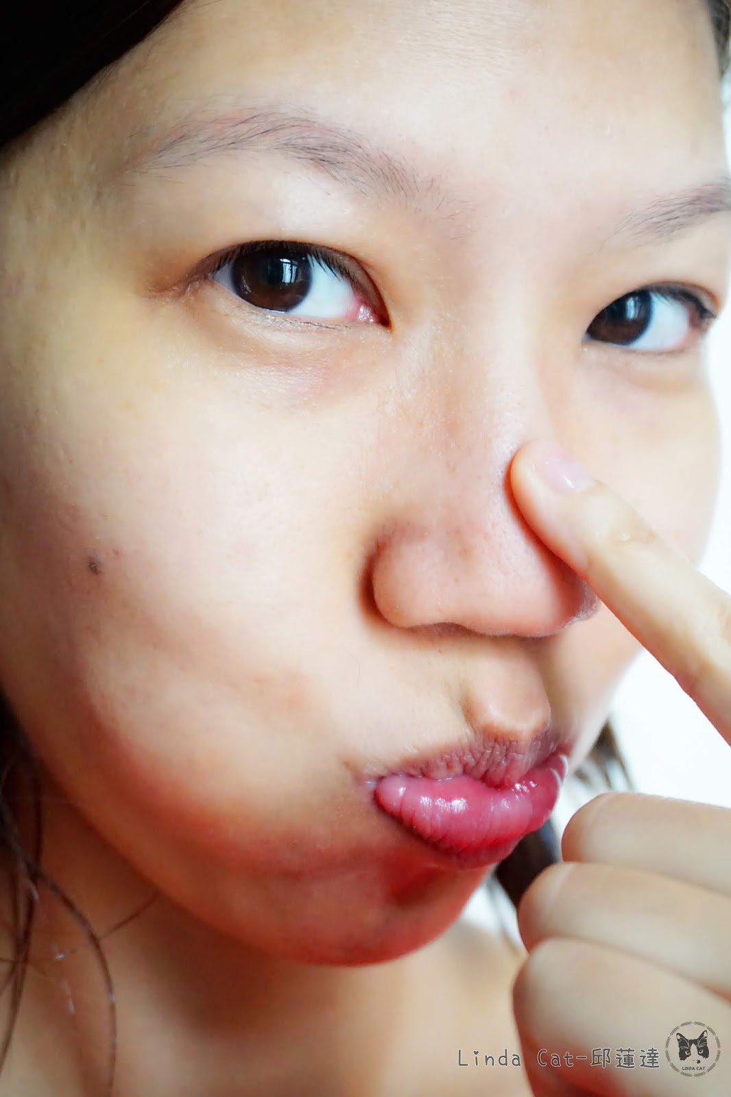 防水眼線一遇淨膚啫喱即刻溶掉一半,據聞是以眼藥水的標準來製造,所以不會澀眼,真的很貼心抵讚,慢慢的會看見彩妝浮出來,呢個時間千其唔好摔面,還是乖乖的靜待10秒,直接用清水洗面。
