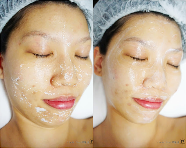 今次療程是以美白為主,所以會用上含有珍珠成份的【膠原珍珠】,係色斑、皺紋上重點敷,加埋【鎂白淡斑活顏精華液】一同按摩,能夠即時擊退面上瑕疵及提升血液循環,改善過度痠勞的肌膚,令皮膚回復細緻幼嫩,締造出白瓷肌的膚質。